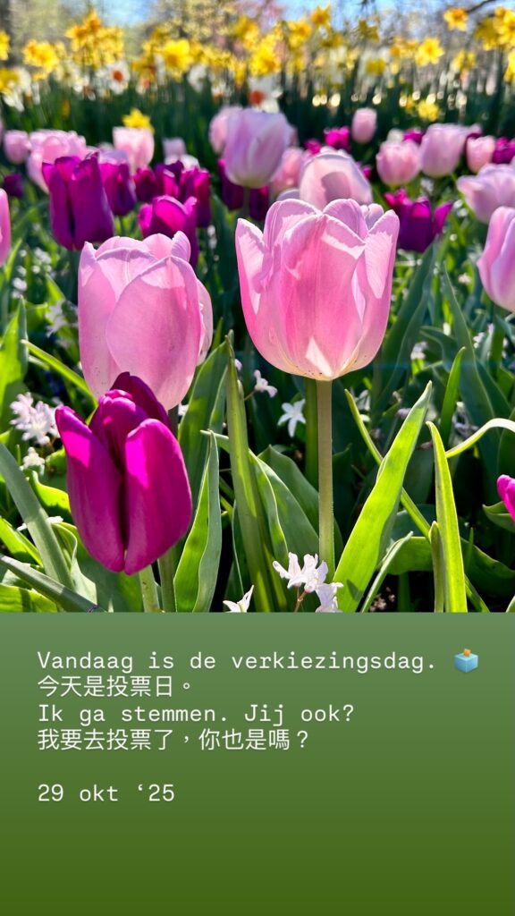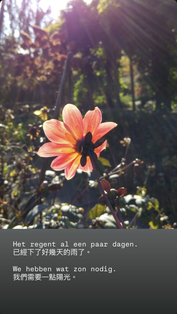 Week 44: 這週的荷語句子與生活影像,從秋日的光影、雨後的花,到街角的投票日與小車車,每一刻都有語言的溫度。📸✨