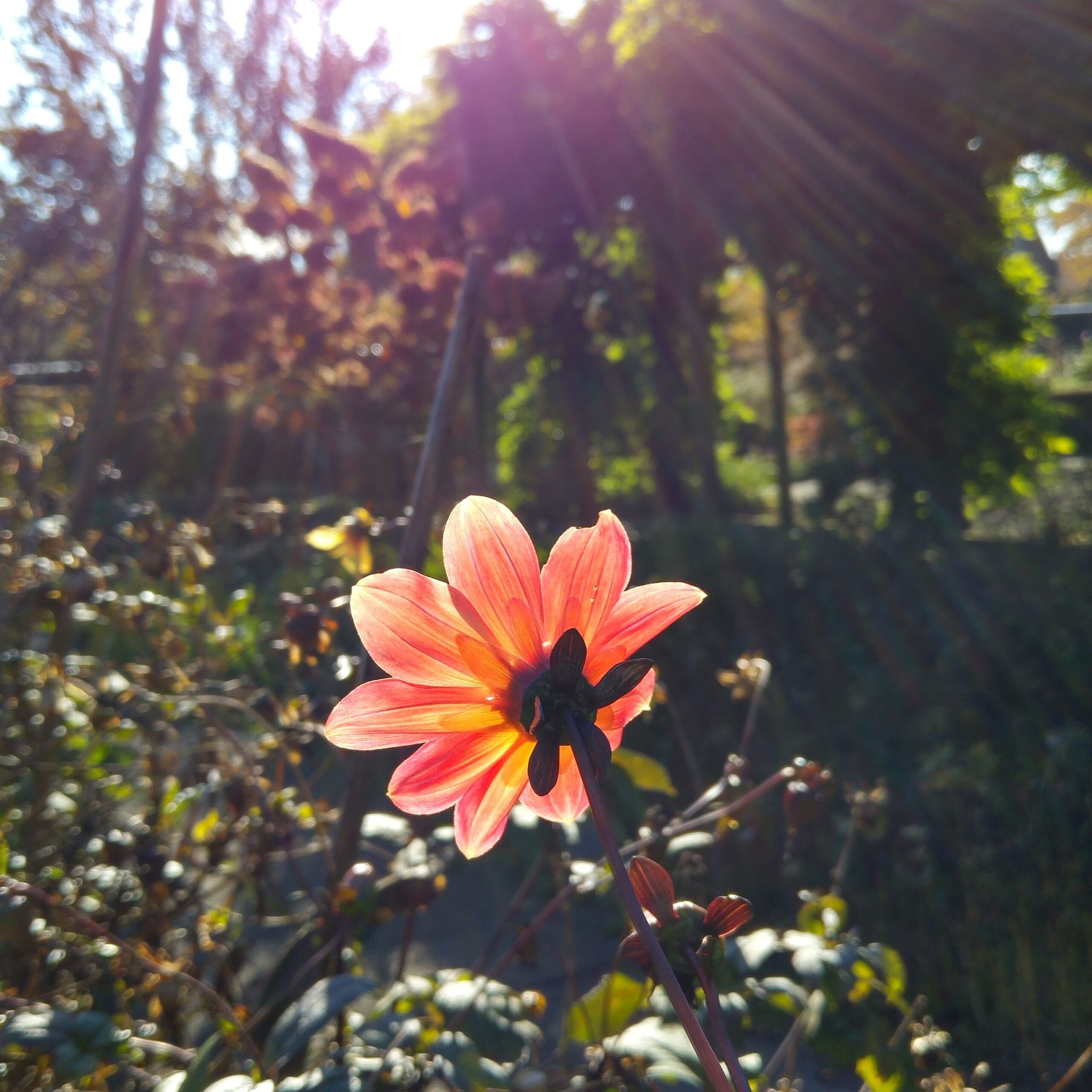 ☀️ 陽光讓紅葉閃閃發亮。